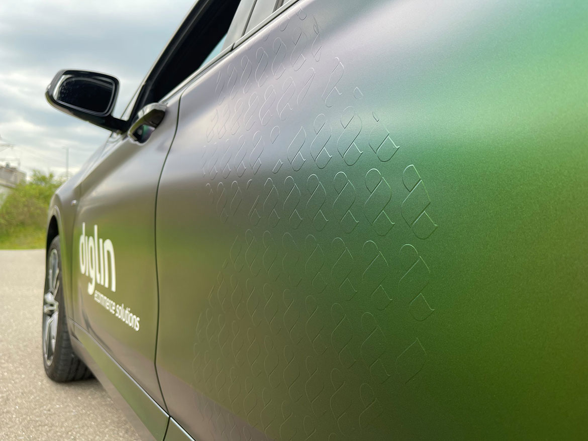 Folienfarbe: Matt Frozen Bronze Mettalic und Matt Caribbean Mint MetallicGrundfarbe: Grafitschwarz